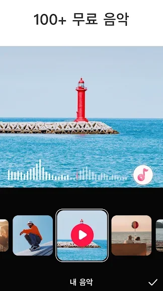 ▶ 동영상을 제작해도 영상에 마크가 생기는게 정말정말 아쉬운 앱이 많았습니다. 하지만、 이 앱은 일단 그게 없습니다.하지만 영상이 저장될 때 그래서 sns 등에 업로드 할때 화질이 역시나 매우 떨어지는 게 느껴집니다. 또한 편집할 때는 노래、영상을 처음부터 재생해서 해야하는 불편함이 있습니다. 짧은 영상 (1분 이내)은 가능하지만、 그 외에는 다소 불편할 수 있을 것 같습니다. 하지만 비슷한 종류의 동영상 편집기 중에서는 무료인 수준에서 최고의 성능을 보여주는 것 같습니다! 또한 편집하는 버튼들이 직관적으로 잘 구성되어 있어 저같은 초보자들도 이것저것 사용하며 익히기 쉽습니다.