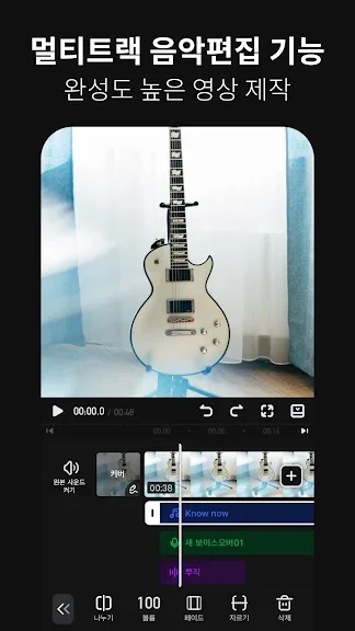 뮤직비디오 편집 어플리케이션으로도 사용할 수 있으며, 영상에 음악을 추가하고 편집할 수 있습니다. Video Guru는 다양한 음악 라이브러리를 제공하며, 사용자의 모바일 폴더에서 음악을 추가할 수도 있습니다. 녹음 기능을 통해 비디오에 더빙을 더할 수도 있습니다.