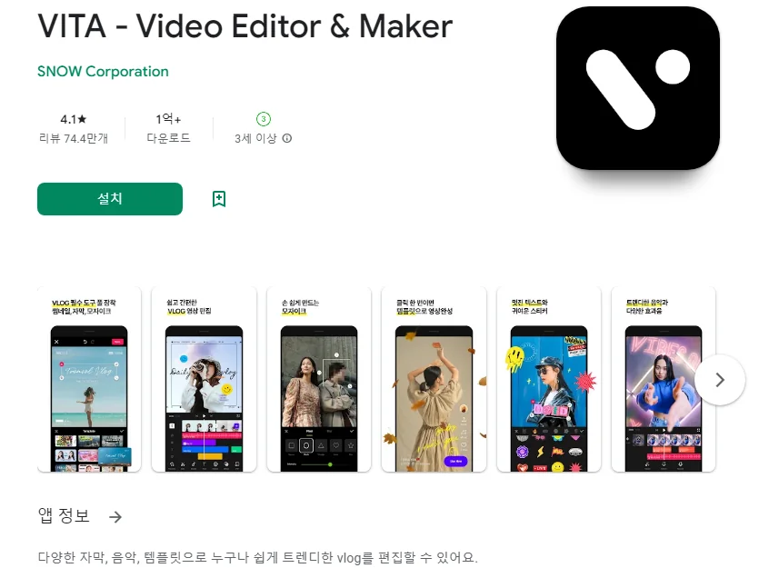 아래는 VITA - Video Editor & Maker 어플에 대한 스크린샷 정보입니다.