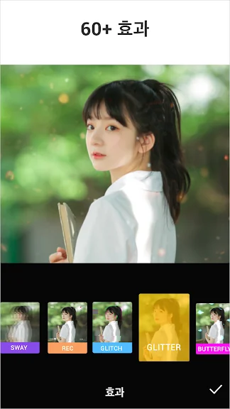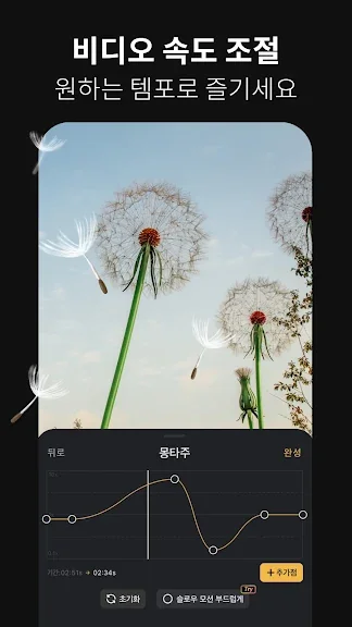 - 다양한 필터와 보정으로 세련된 영상을 연출할 수 있어요. 밝기, 콘트라스트, 채도, 색조, 그림자 등 디테일한 보정을 지원합니다.