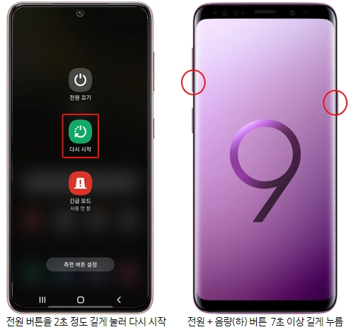 갤럭시 S10 포함 이전 모델, 다시 시작 방법
