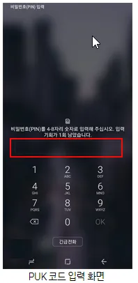 #갤럭시 #핸드폰 #USIM #유심 #잠금해제 #PUK #번호 #확인방법