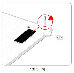 전기 장판, 온수 매트, 핫팩, 자동차 히터 앞과 같이 기기 주변에서 열을 생성하는 장치 근처에서 사용하면 스마트폰의 온도가 높아질 수 있습니다.