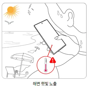 해변, 자동차 내부, 테라스 등 직사광선에 노출되는 환경에서 사용하면 스마트폰의 온도가 쉽게 상승할 수 있습니다.