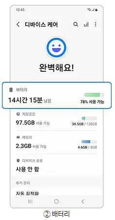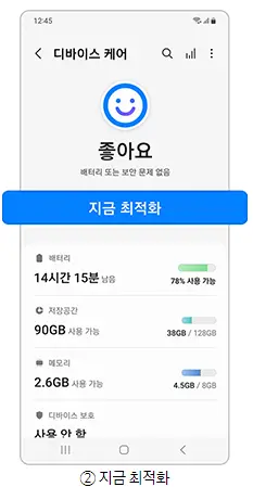 방법1.  갤럭시 기기 최적화를 통해 높은 프로세서 사용량으로 배터리를 과다하게 소모하는 앱으로 인한 열을 최소화하세요.