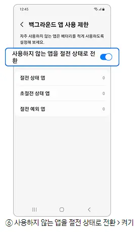 방법2.  백그라운드에서 실행중인 앱으로 인해 갤럭시 기기가 뜨거워질 수 있습니다. 이 문제를 해결하려면 '백그라운드 사용 제한'을 해보세요.