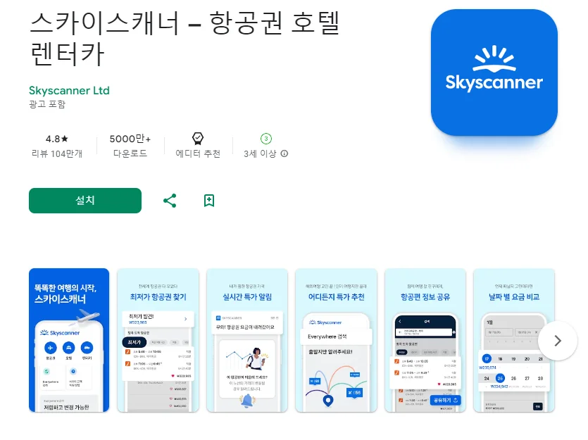 아래는 스카이스캐너 – 항공권 호텔 렌터카 어플에 대한 스크린샷 정보입니다.