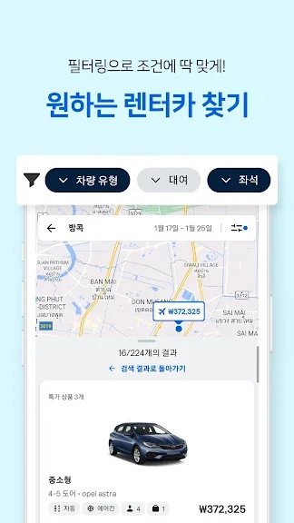 수백 개의 업체와 차종을 모바일 앱에서 한눈에 비교하고 예약하세요.