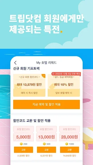 트립닷컴에서 경쟁력 있는 가격으로 호텔, 항공권 그리고 기차표까지 쉽게 예약하세요. 트립닷컴 회원에게만 독점으로 제공되는 시크릿 특가, 항공권 및 호텔 예약 수수료 0원의 혜택도 놓치지 마세요.