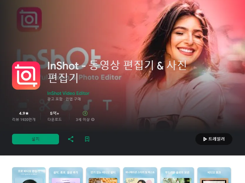 3) InShot - 동영상 편집기 & 사진 편집기 어플 베스트 리뷰