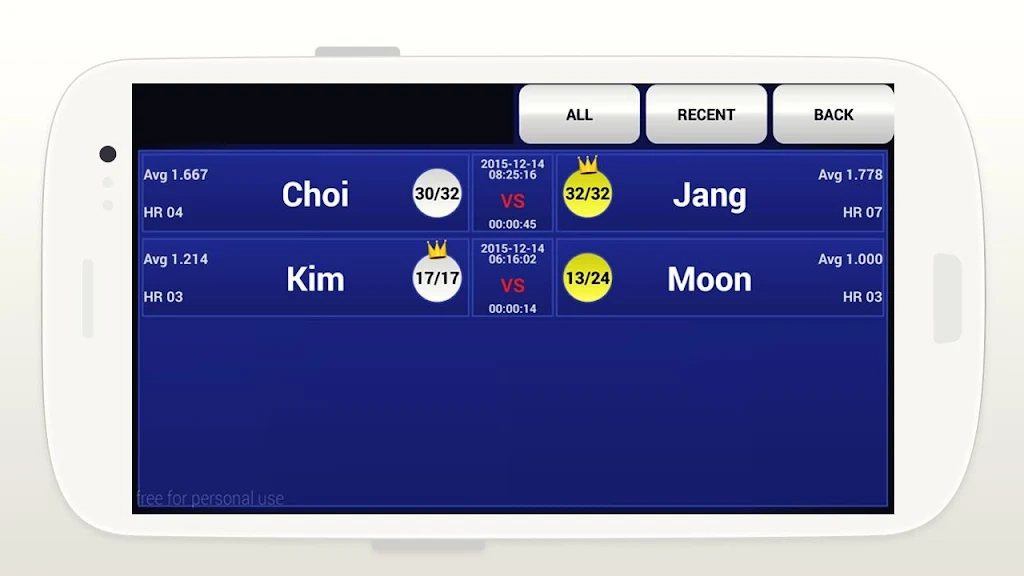 ▶ 매우 좋습니다. 궁금한것이 현재 해외인데 제가 이앱을 4개의 태블릿에 설치하여 사용할예정인데 4개의 기기의 전적, 에버리지등의 기록이 연동이 될수있게 하는 방법이 있는지요