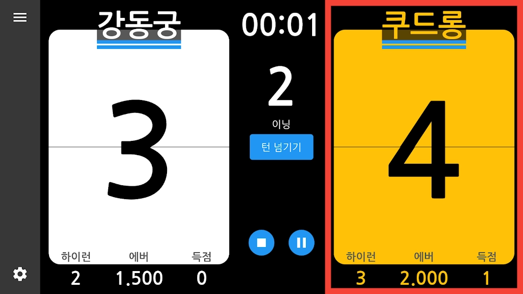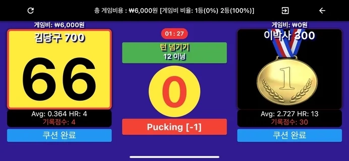 ▶ 너무 좋아요 추가로 상대방 점수 입력을 할 수 있게 해서 5점이하부터 남은점수를 알려주면 더욱더 좋을것 같습니다~
