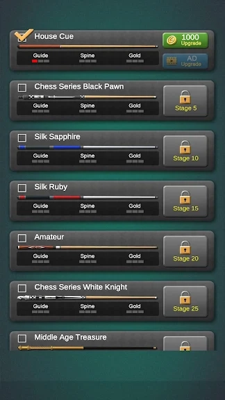 - 큐대의 능력을 업그레이드 할 수 있습니다.