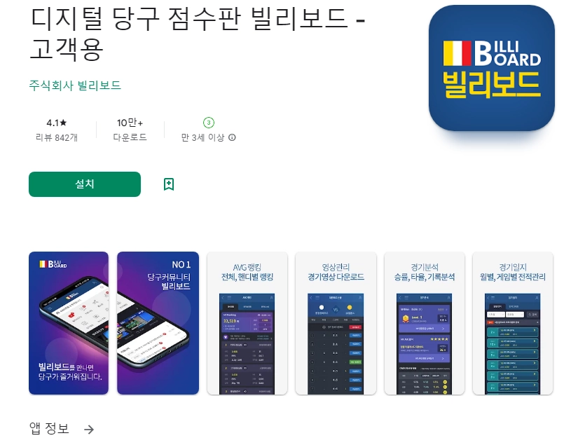 이 어플은 구글플레이스토어에서 "스마트폰 당구 점수판"로 검색했을때 2번째로 나오는 어플입니다. 아래는 디지털 당구 점수판 빌리보드 - 고객용 어플에 대한 자세한 설명이니 참고하세요.