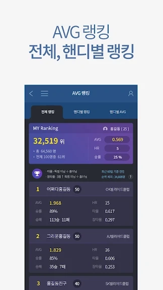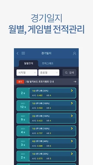 또한 보다 나은 실력을 기르기 위해 에버리지, 하이런, 게임결과 등 게임 전적을 기록합니다.