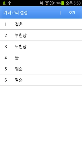 2. 카테고리별 분류 (결혼, 부친상, 모친상, 돌, 칠순, 팔순 등등..)