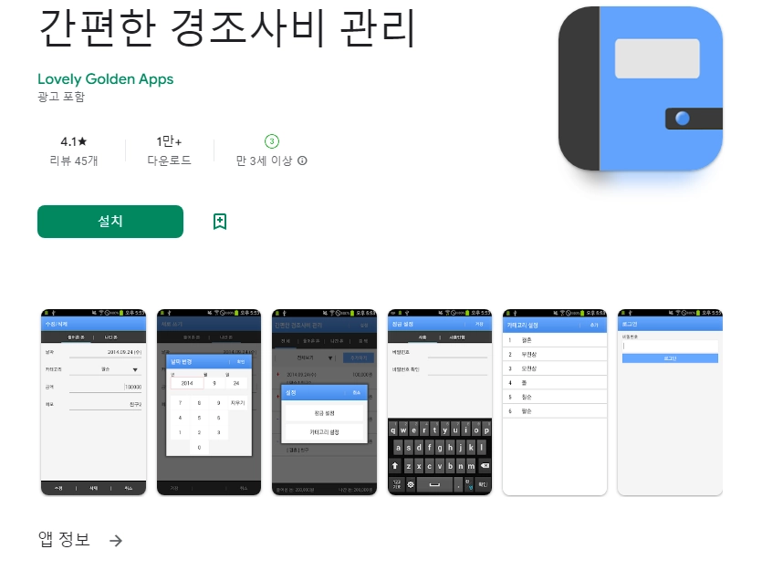 아래는 경조사관리 어플에 대한 스크린샷 정보입니다.