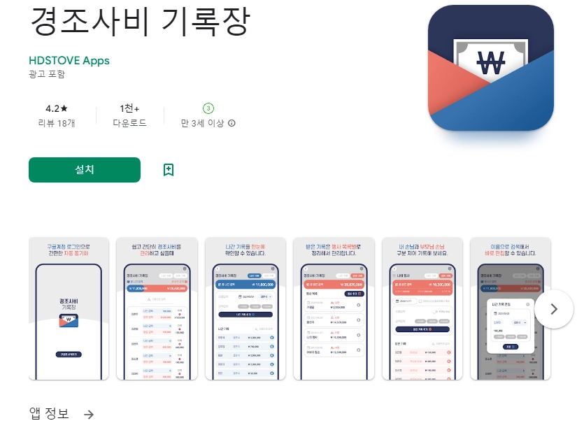 경조사비 기록장 어플에 대한 스크린샷 정보가 필요하시다면 아래 이미지를 참고하시기 바랍니다.
